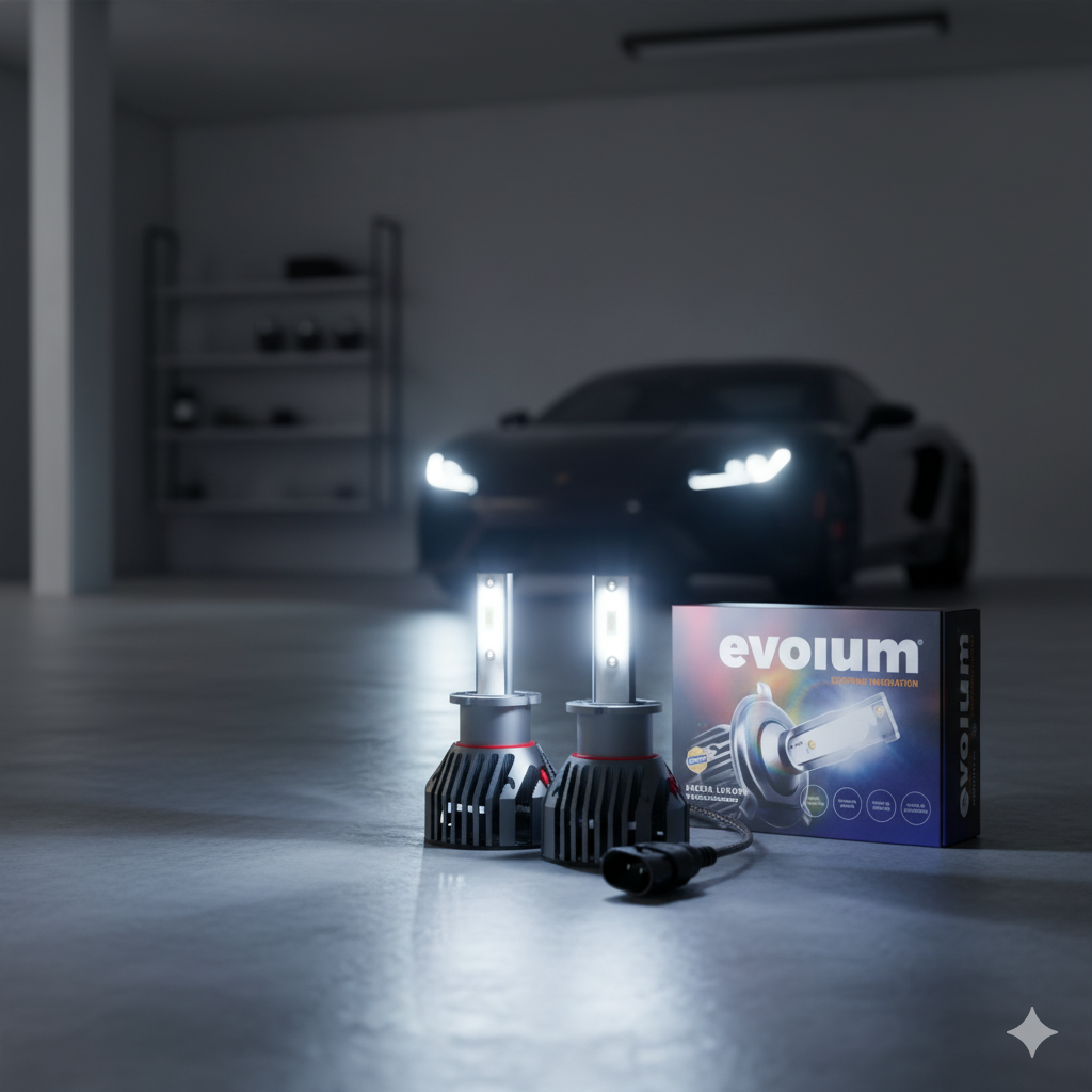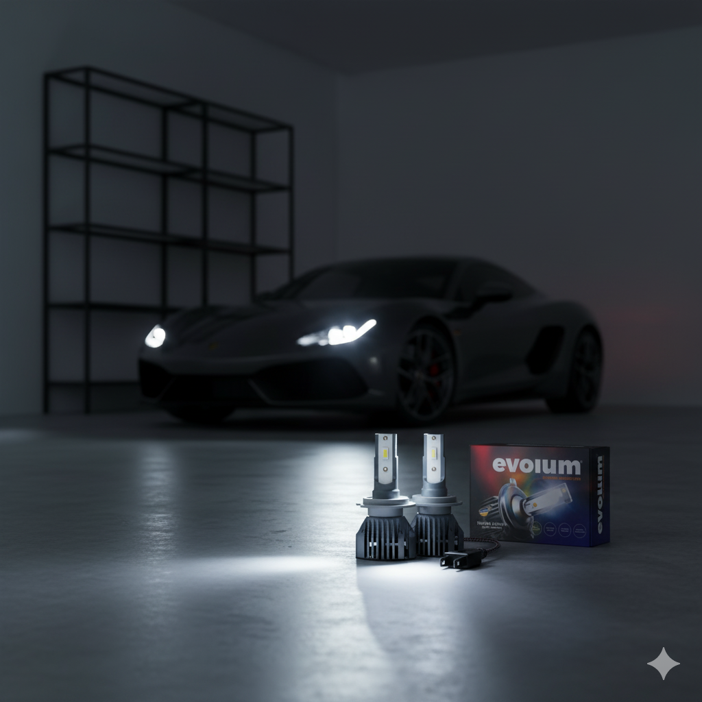 Nuestro Kit de LED EVOLUM es fabricado con una estructura de aluminio con difusor y ventilador turbo para su enfriamiento, garantiza la temperatura óptima con el objetivo de mantener la mayor durabilidad del LED, su tecnología LED tipo COB o CSP de alta potencia con visibilidad 360 (con luz centrada para mayor alcance de hasta un 300% ), además cuenta con un balastro para aumentar la potencia y regular los picos de voltaje.