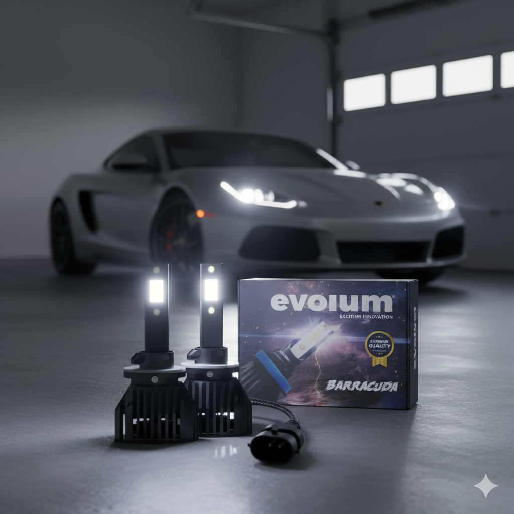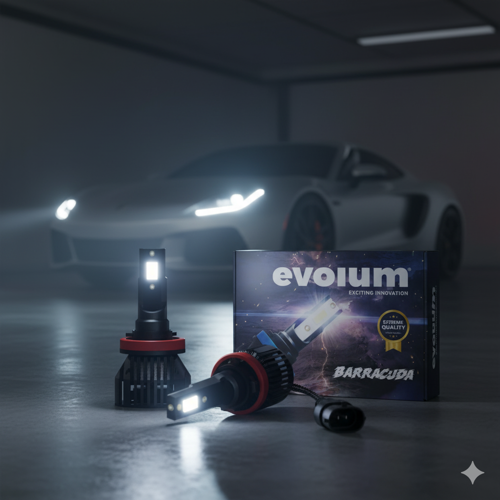 Nuestro Kit de LED EVOLUM es fabricado con una estructura de aluminio con difusor y ventilador turbo para su enfriamiento, garantiza la temperatura óptima con el objetivo de mantener la mayor durabilidad del LED, su tecnología LED tipo COB o CSP de alta potencia con visibilidad 360 (con luz centrada para mayor alcance de hasta un 300% ), además cuenta con un balastro para aumentar la potencia y regular los picos de voltaje.