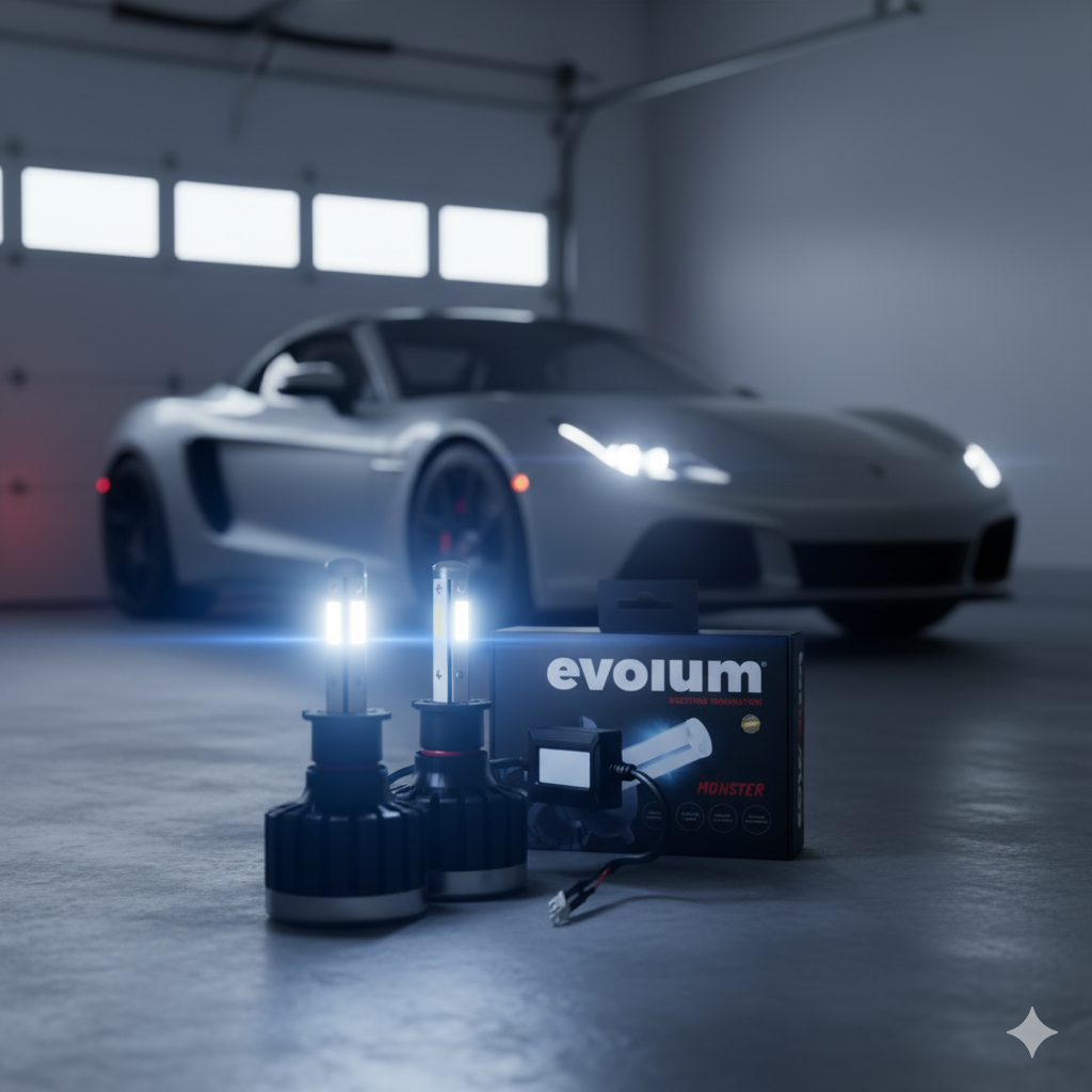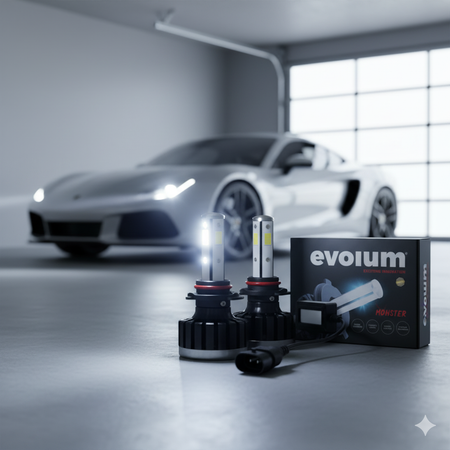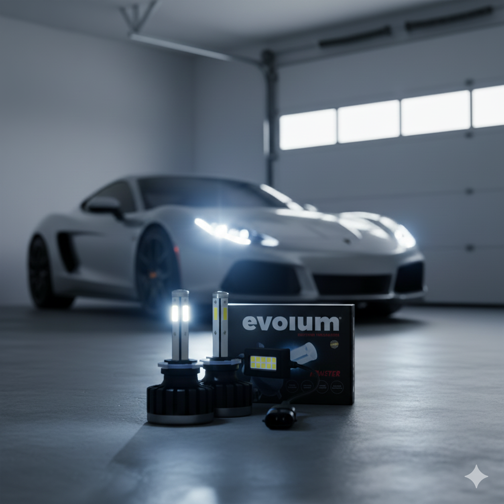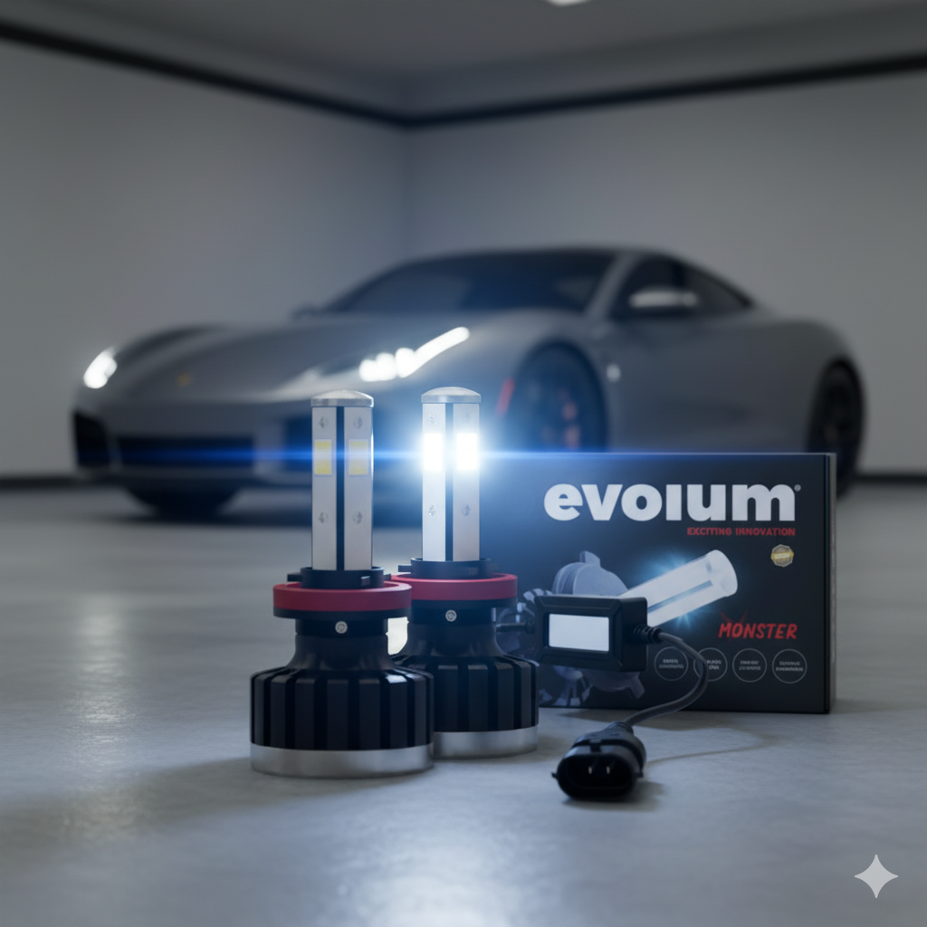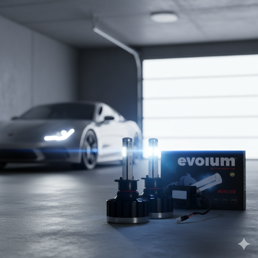 Nuestro Kit de LED EVOLUM es fabricado con una estructura de aluminio con difusor y ventilador turbo para su enfriamiento, garantiza la temperatura óptima con el objetivo de mantener la mayor durabilidad del LED, su tecnología LED tipo COB o CSP de alta potencia con visibilidad 360 (con luz centrada para mayor alcance de hasta un 300% ), además cuenta con un balastro para aumentar la potencia y regular los picos de voltaje.