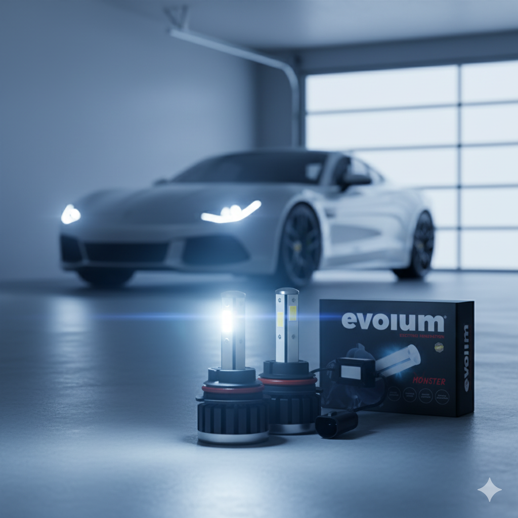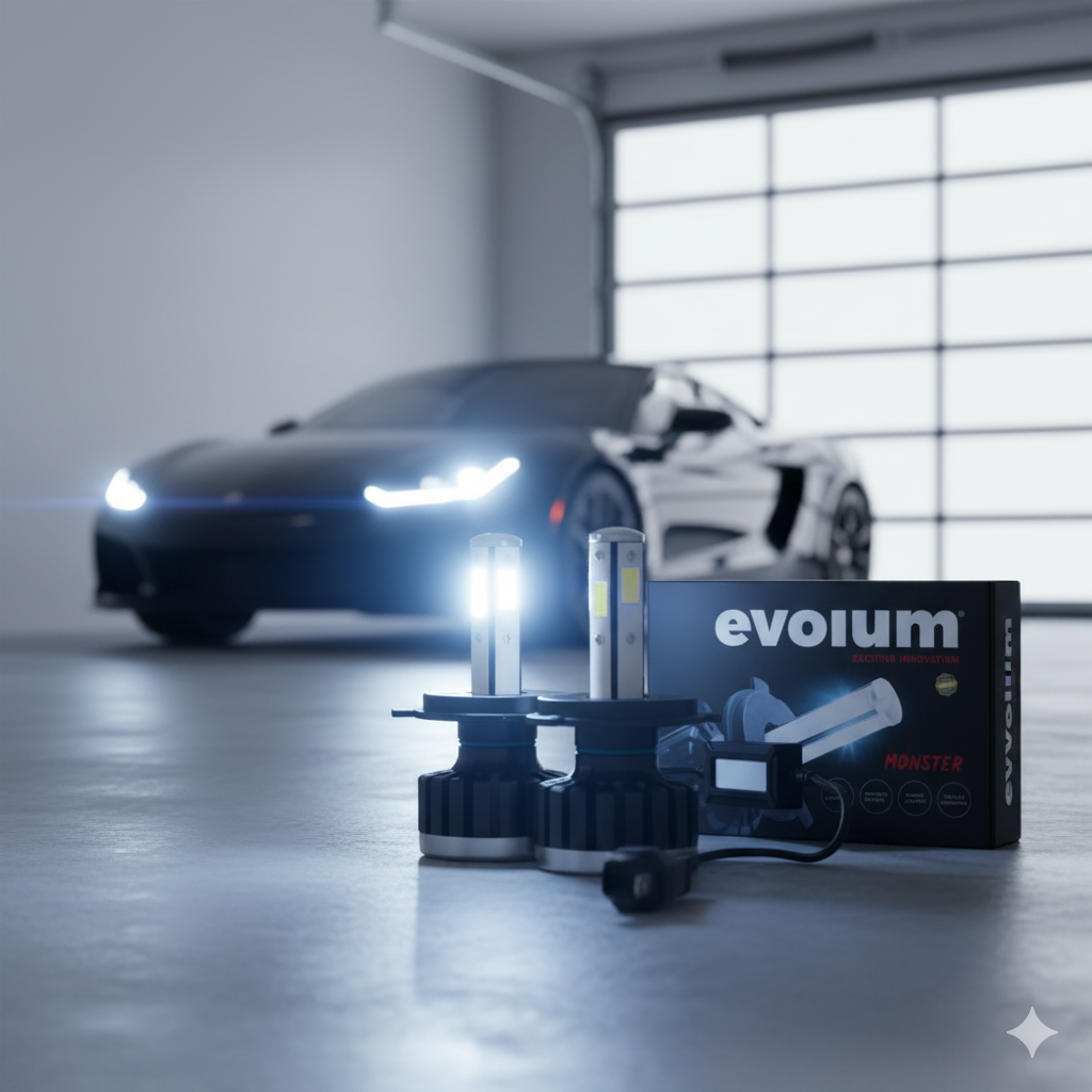 Nuestro Kit de LED EVOLUM es fabricado con una estructura de aluminio con difusor y ventilador turbo para su enfriamiento, garantiza la temperatura óptima con el objetivo de mantener la mayor durabilidad del LED, su tecnología LED tipo COB o CSP de alta potencia con visibilidad 360 (con luz centrada para mayor alcance de hasta un 300% ), además cuenta con un balastro para aumentar la potencia y regular los picos de voltaje.