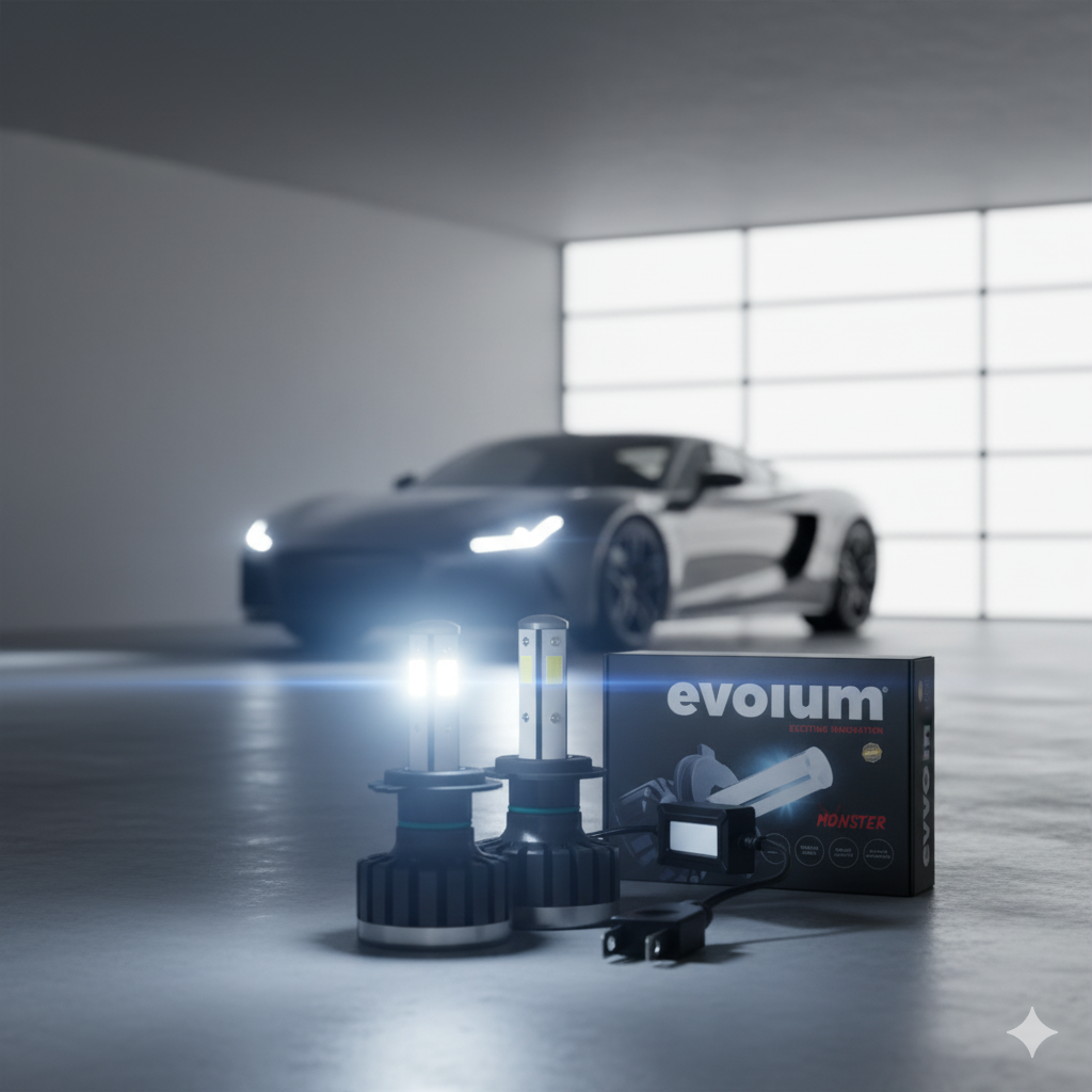 Nuestro Kit de LED EVOLUM es fabricado con una estructura de aluminio con difusor y ventilador turbo para su enfriamiento, garantiza la temperatura óptima con el objetivo de mantener la mayor durabilidad del LED, su tecnología LED tipo COB o CSP de alta potencia con visibilidad 360 (con luz centrada para mayor alcance de hasta un 300% ), además cuenta con un balastro para aumentar la potencia y regular los picos de voltaje.