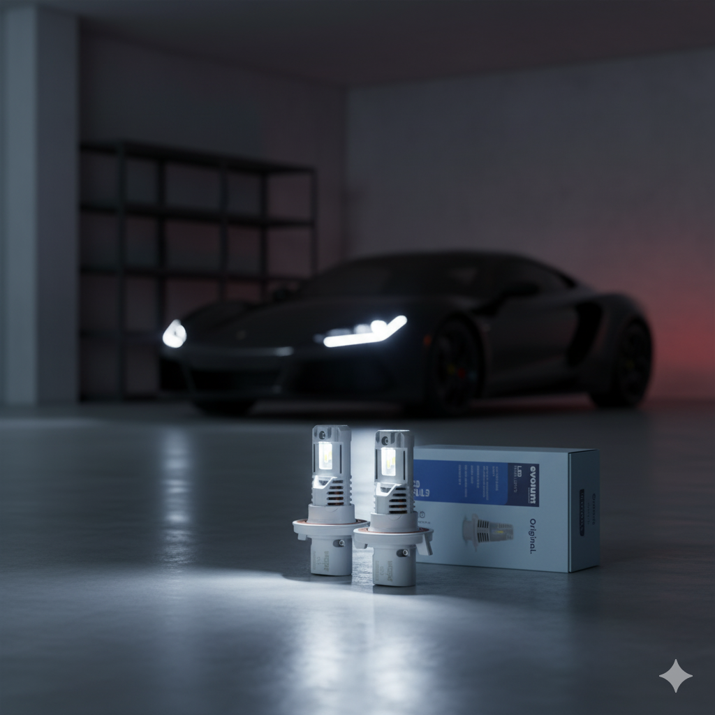 Nuestro Kit de LED EVOLUM es fabricado con una estructura de aluminio con difusor y ventilador turbo para su enfriamiento, garantiza la temperatura óptima con el objetivo de mantener la mayor durabilidad del LED, su tecnología LED tipo COB o CSP de alta potencia con visibilidad 360 (con luz centrada para mayor alcance de hasta un 300% ), además cuenta con un balastro para aumentar la potencia y regular los picos de voltaje.