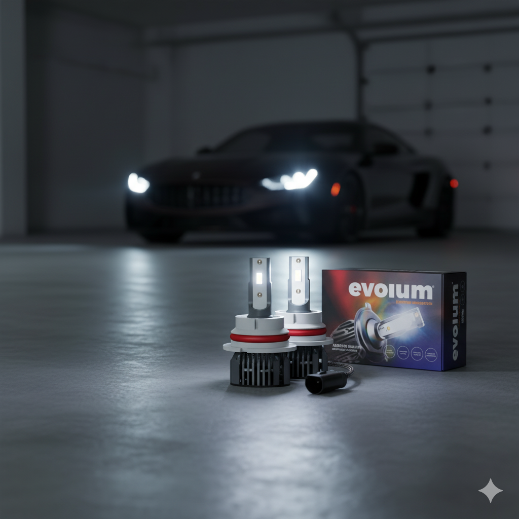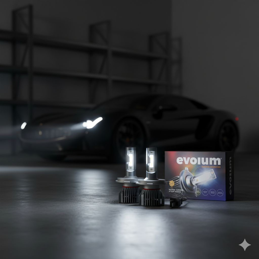 Nuestro Kit de LED EVOLUM es fabricado con una estructura de aluminio con difusor y ventilador turbo para su enfriamiento, garantiza la temperatura óptima con el objetivo de mantener la mayor durabilidad del LED, su tecnología LED tipo COB o CSP de alta potencia con visibilidad 360 (con luz centrada para mayor alcance de hasta un 300% ), además cuenta con un balastro para aumentar la potencia y regular los picos de voltaje.