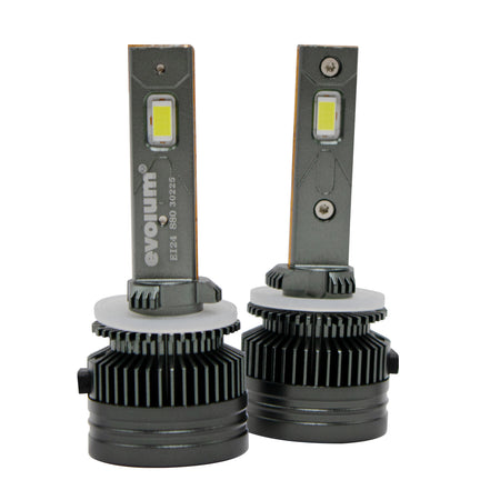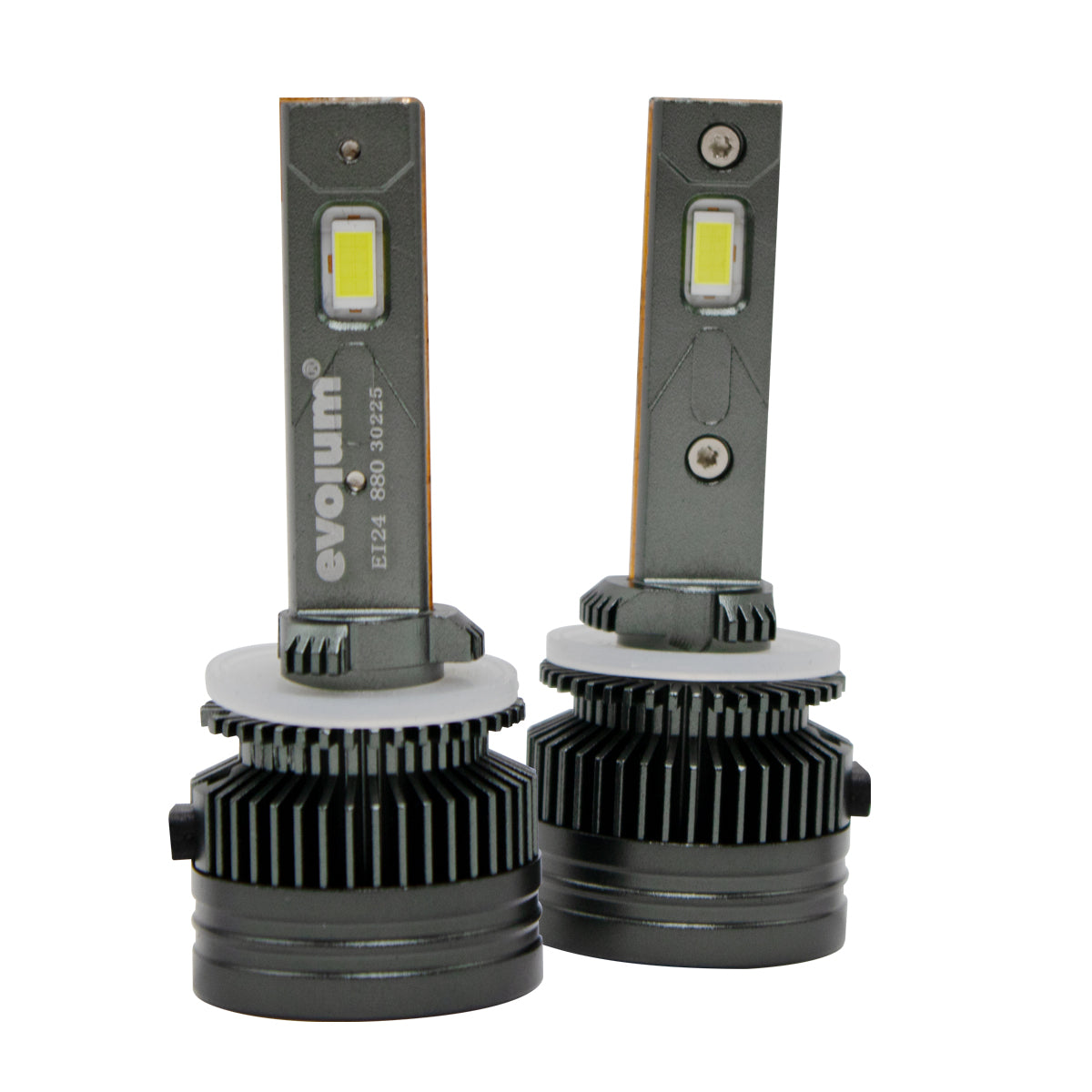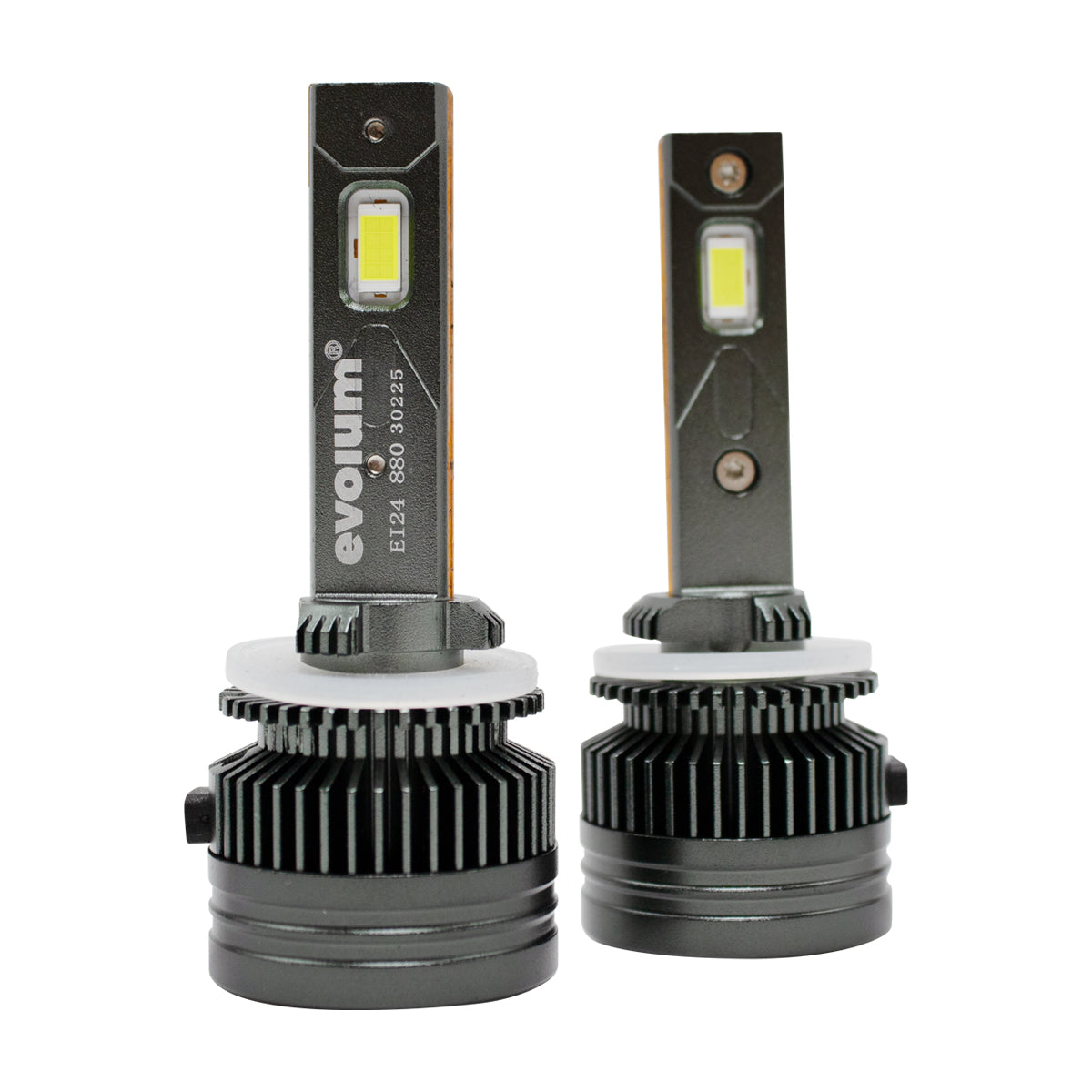 Nuestro Kit de LED EVOLUM es fabricado con una estructura de aluminio con difusor y ventilador turbo para su enfriamiento, garantiza la temperatura óptima con el objetivo de mantener la mayor durabilidad del LED, su tecnología LED tipo COB o CSP de alta potencia con visibilidad 360 (con luz centrada para mayor alcance de hasta un 300% ), además cuenta con un balastro para aumentar la potencia y regular los picos de voltaje.