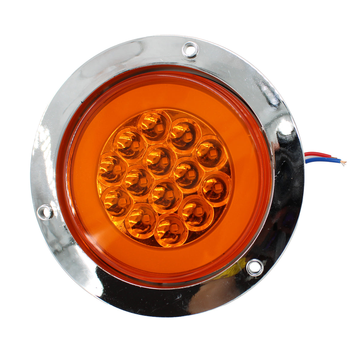 Plafón Redondo 4 Con Bisel Cromo 14led Luz Fija Y C/estrobo F017 Ámbar