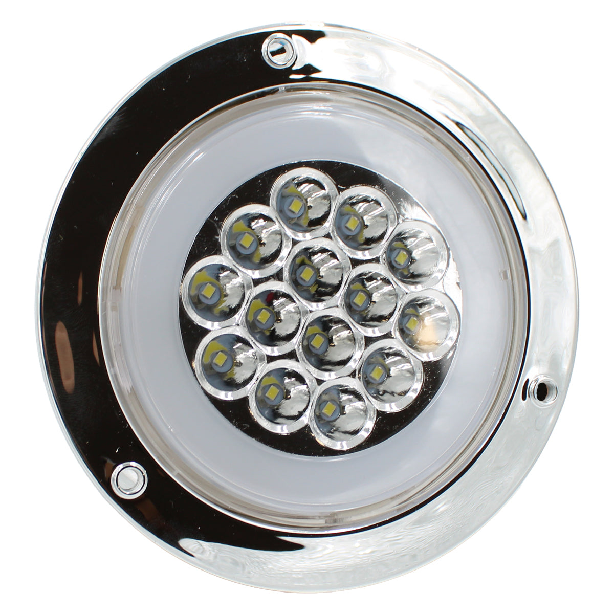 Plafón Redondo 4 Con Bisel Cromo 14led Luz Fija Y C/estrobo F017 Blanco